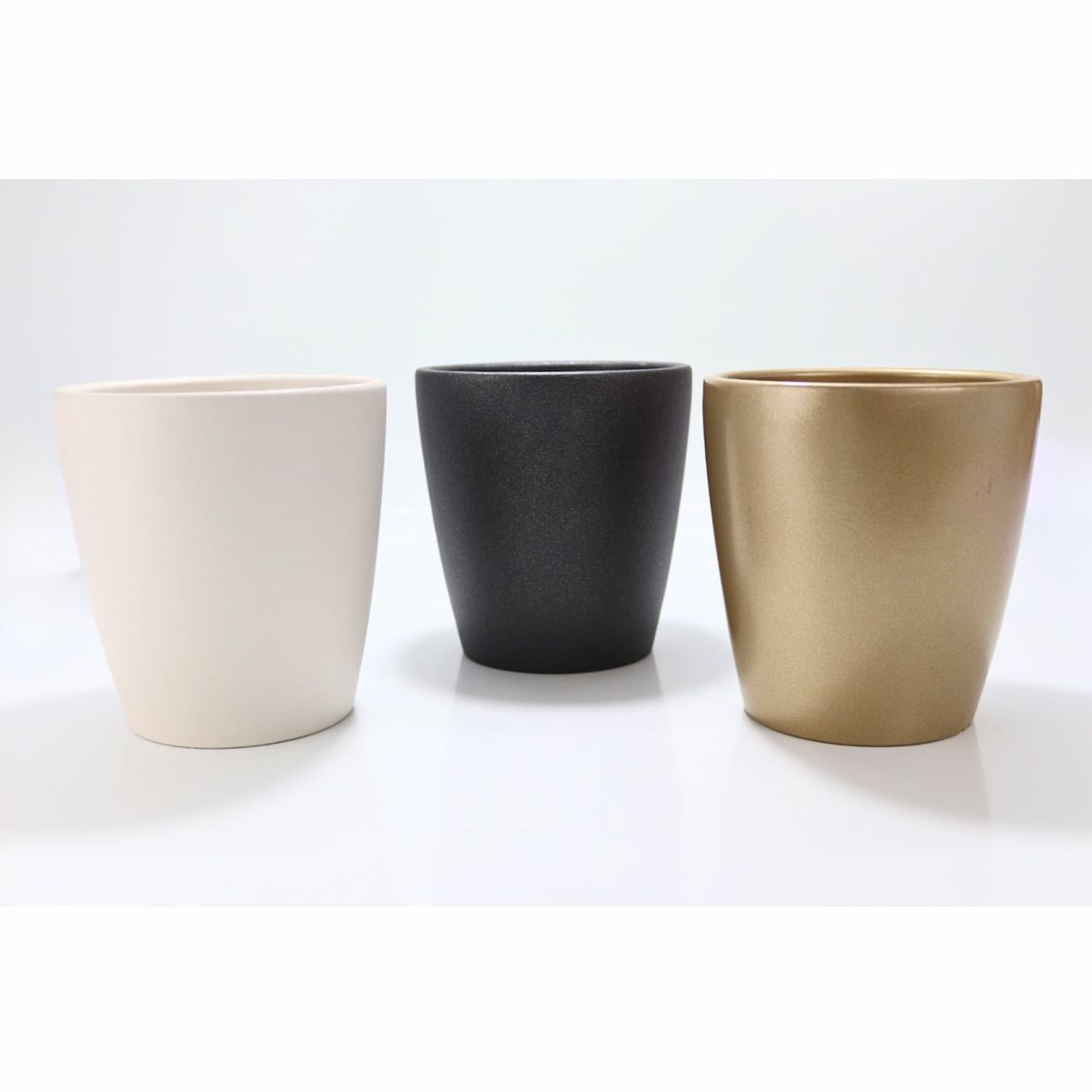 MACETA DE CERÁMICA SURTIDO DE 3 COLORES BLANCO, NEGRO & ORO DECORATIVA PARA PLANTAS.