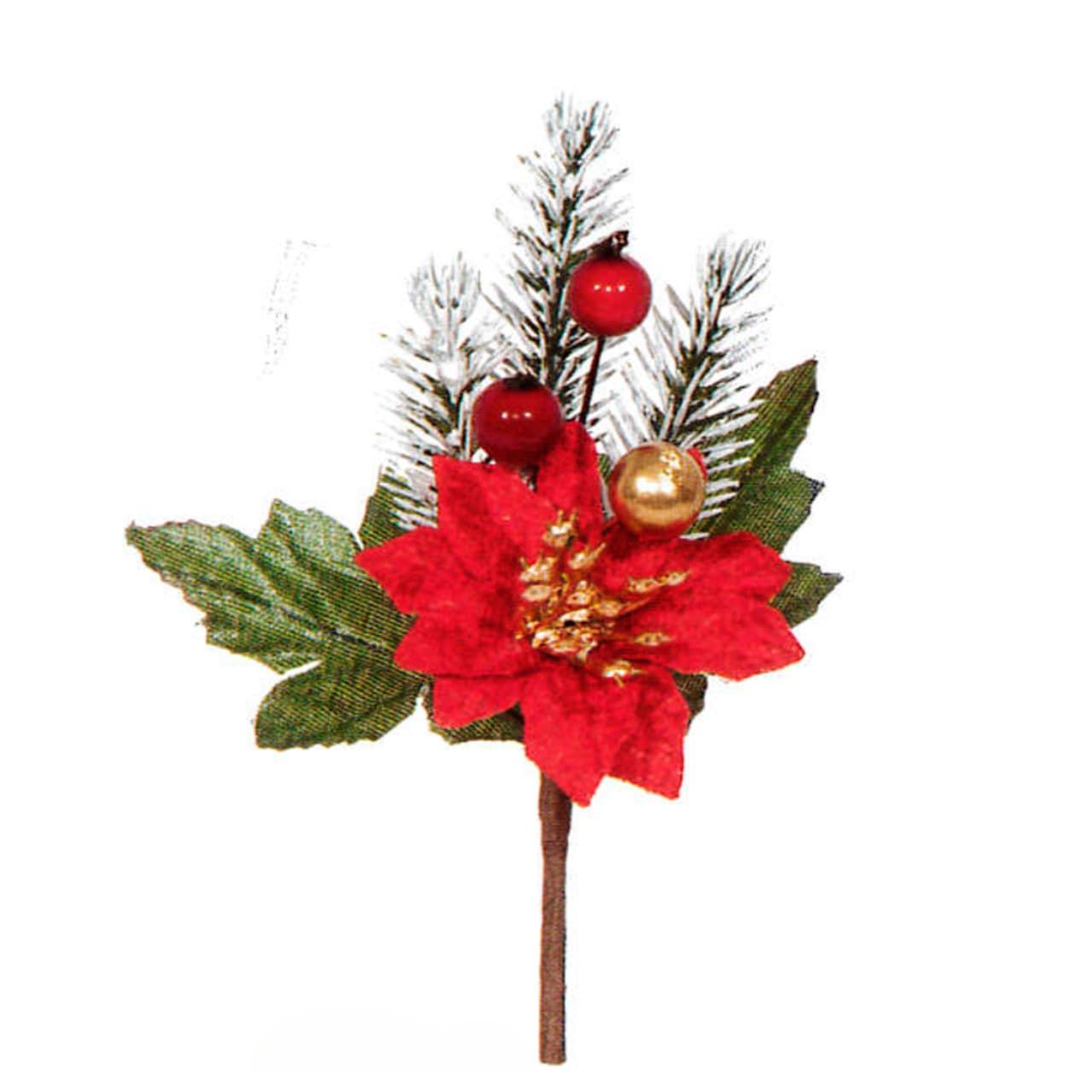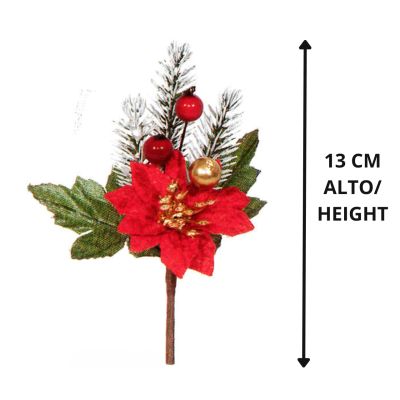 Pick Decorativo Flor de Poinsettia Navidad Bayas Rojo & Oro