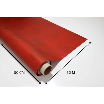 Rollo de bobina de papel para envolver, con aroma a rosas e impreso en color burdeo, imprescindible e ideal como envoltorio para todo tipo de productos. Gracias a su ancho de 80 cm y longitud de 30 metros, garantizamos que tendrás un papel flexible y resistente.
