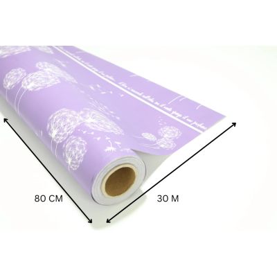 Rollo de bobina de papel para envolver, con aroma a jazmín e impreso en color violeta, imprescindible e ideal como envoltorio para todo tipo de productos. Gracias a su ancho de 80 cm y longitud de 30 metros, garantizamos que tendrás un papel flexible y resistente.