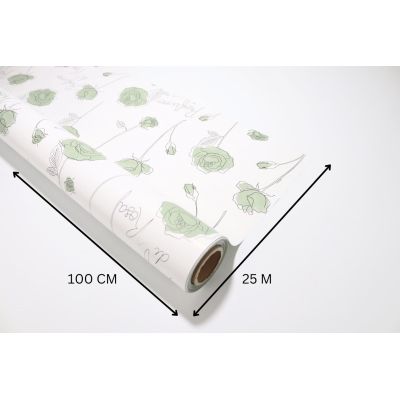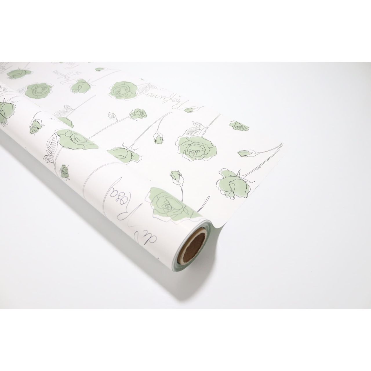 Rollo de bobina de papel para envolver perfumado con aroma a rosas e impreso en color verde agua, imprescindible e ideal como envoltorio para todo tipo de productos. Gracias a su ancho de 100 cm y longitud de 25 metros, garantizamos que tendrás un papel flexible y resistente.