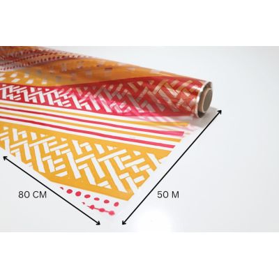 Bobina Papel de Regalo Transparente Azteca Ocre & Burdeos