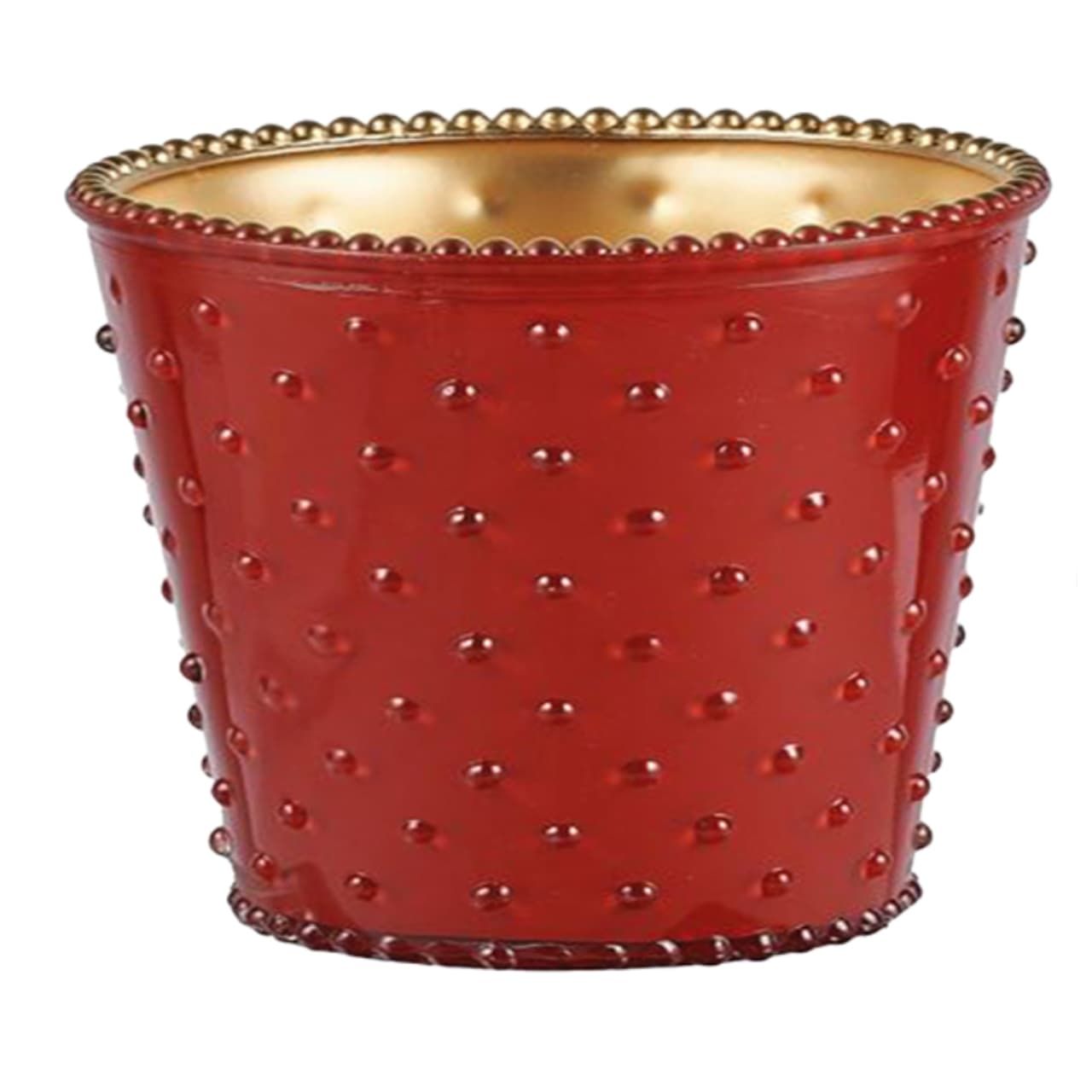 RED & GOLD GLASS PLANTER POT FOR PLANTS AND CANDLES.