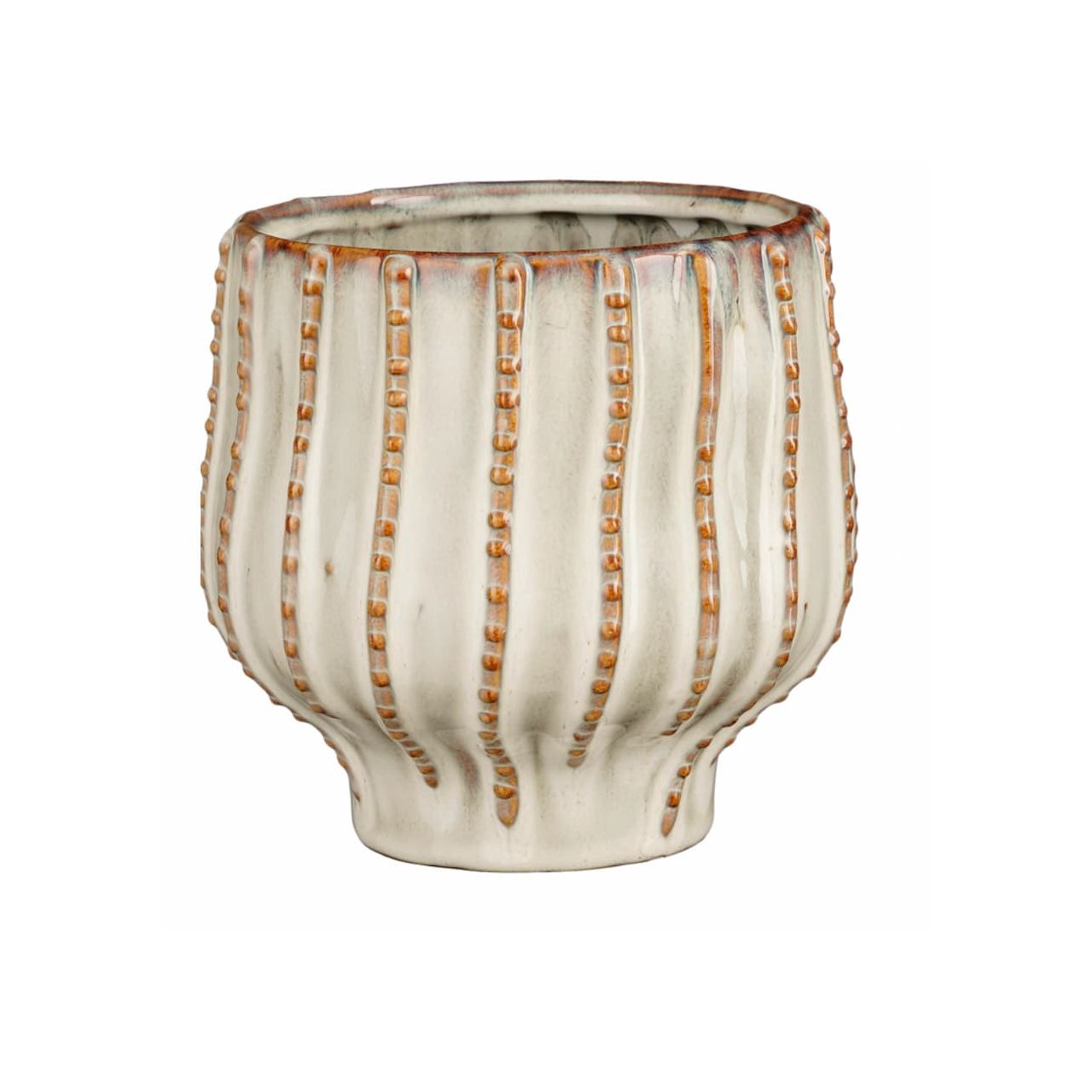 CERAMIC PLANTERS WITH RELIEF AND DOTS.