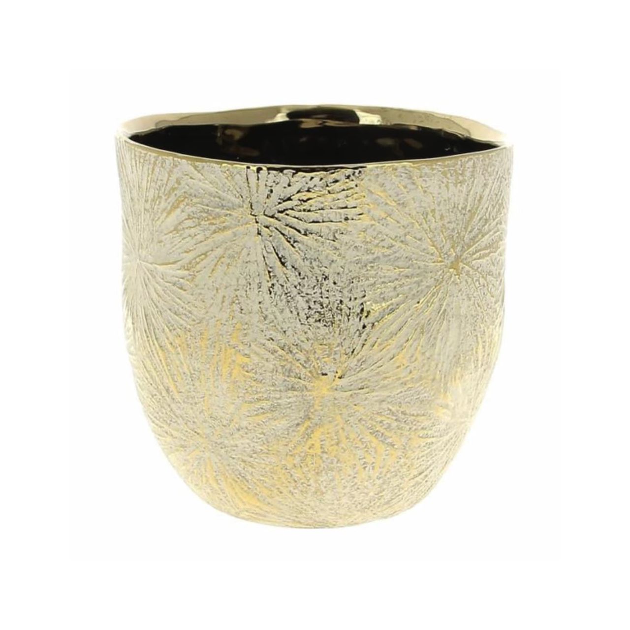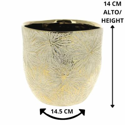 DECORATIVE GOLD CERAMIC PLANTER POT WITH ORCHID RELIEF FINISH FOR PLANTS.